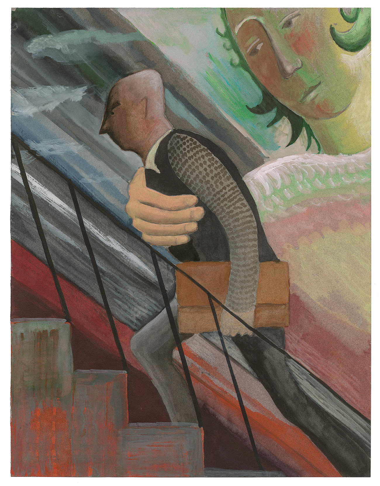Anche se è in grado di spiegare e applicare precise regole prospettiche, le dimentica quando si crea un’immagine. Poi pensa in termini di tonalità di colore e di valori tonali, di forme superficiali e di rapporti di forma. Le regole del visibile vengono infrante a favore dell’espressione e della chiarezza della narrazione. Il riferimento superficiale del mondo pittorico può ricordare i pittori del primo Rinascimento, che riferivano di questo mondo, ma non lo facevano mai senza perdere il loro legame con un terreno spirituale e quindi con la superficie.