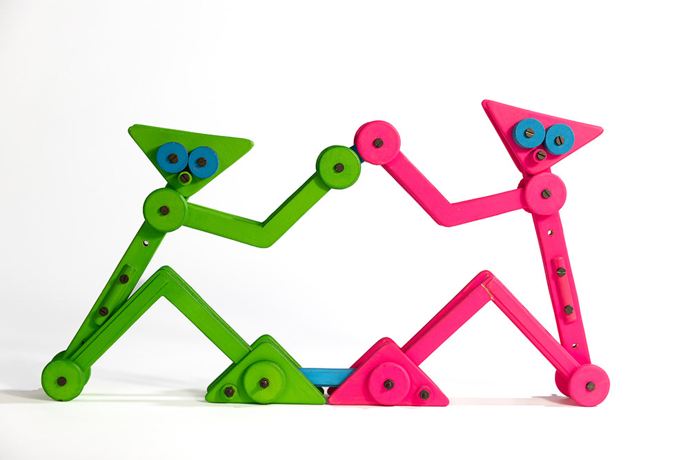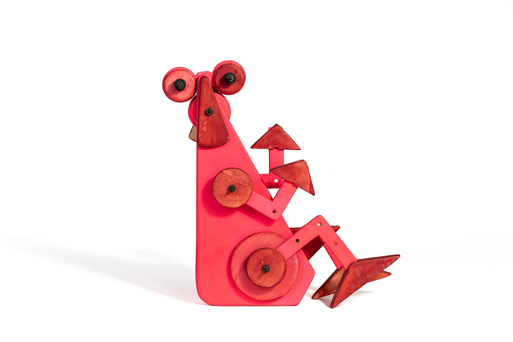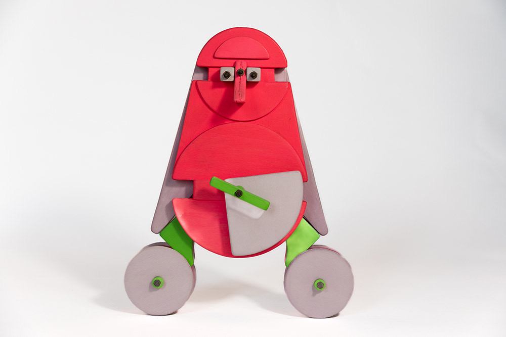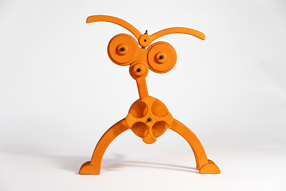 Come ha sottolineato Bruno Munari (1907-1998), “il metodo progettuale non è altro che una serie di operazioni necessarie, disposte in un ordine logico dettato dall’esperienza. […] Creatività non vuol dire improvvisazione senza metodo”. Guaccero, grazie al suo spirito pratico, riesce a coniugare fantasia e creatività, a tale proposito riportiamo ancora le parole di Munari che risultano chiarificatrici: “La fantasia è una facoltà dello spirito capace di inventare immagini mentali diverse dalla realtà nei particolari o nell’insieme; immagini che possono anche essere irrealizzabili praticamente. La creatività è una capacità produttiva dove fantasia e ragione sono collegate per cui il risultato che si ottiene è sempre realizzabile praticamente”. Ogni singolo pezzo di legno utilizzato per dare vita ai Pupazzi, realizzati tra il 1985 e il 1990, è stato progettato, disegnato, ritagliato, lavorato, levigato con grande attenzione e precisione, dipinto con colori a tempera e poi assemblato. Questi assemblaggi di forme mettono ben in evidenza le loro particolari caratteristiche tecniche, a volte complesse, ma anche quelle materiche, cromatiche e tattili. Proprio quest’ultimo aspetto sottolinea che grazie alla manipolazione queste creature articolate possono muoversi e cambiare il loro aspetto. In questi lavori è, infatti, insita la possibilità che ogni Pupazzo possa essere trasformato in qualcosa d’altro, e a vedere trasformare le cose si rimane creativi e non ci si annoia mai.