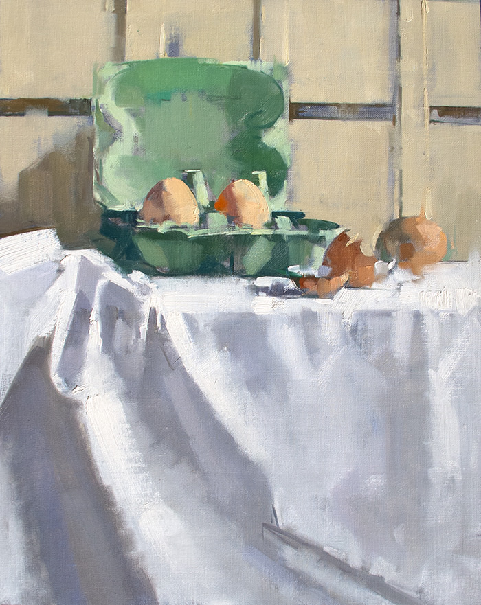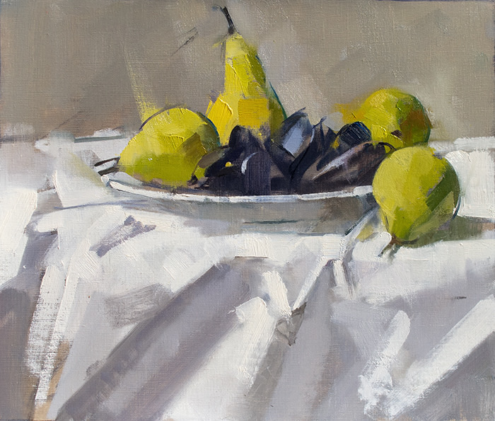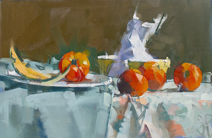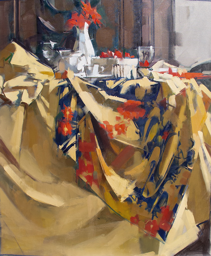 Dipingo direttamente dal vero piuttosto che da un’idea astratta, perché i colori e le forme sono la mia ispirazione. Per me la pittura è, prima di tutto, la visione come pura sensazione libera da significati, l'“esperienza vissuta” del vedere, quando un caos di forme colorate di luce entra nel mio occhio, e poi la lotta e la ricerca per strutturare quel caos in un insieme armonioso e significativo. In un certo senso, tutti i miei dipinti sono ritratti. Cerco di catturare un momento molto specifico della percezione visiva con tutti i suoi dettagli accidentali, la sua massa ribollente di particolari di superficie, per poi riunirli, distillati e organizzati, in una solida struttura di universi umani. Quando dipingo c'è poca distinzione tra una persona viva e un insieme di oggetti inanimati. Sebbene sia chiamata “natura morta”, per me la natura morta non ha nulla di morto. Gli oggetti in sé sono vivi, con forme e gesti, e soprattutto sono animati nelle loro relazioni reciproche. Gli spazi intermedi brillano di energia, l'energia dell'intercomunicazione, e tutte le forme sulla tela sono in equilibrio precario all'interno del rettangolo dove li sto inquadrando. Ogni pennellata, ogni gesto, ogni colore contribuisce alla sinfonia dell’insieme.