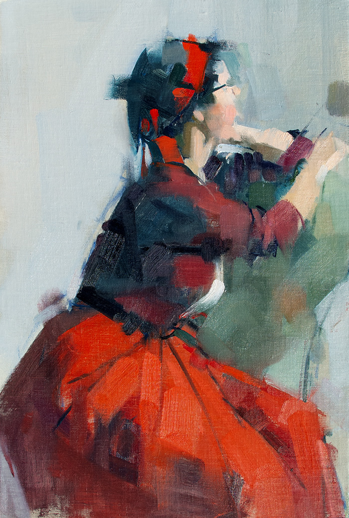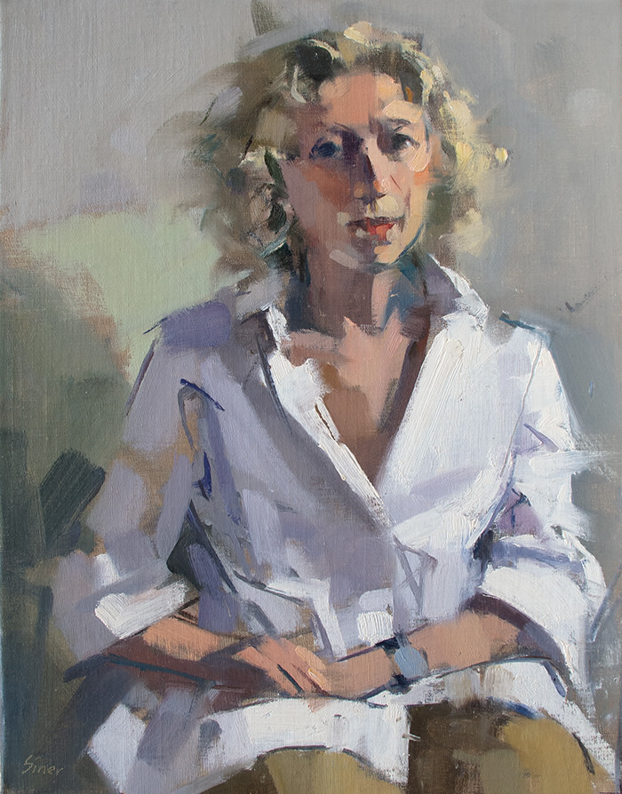 Il ritratto di un essere umano porta ulteriori strati di complessità alla pittura. La “somiglianza” è una questione molto sfumata; siamo miliardi di creature quasi identiche, eppure ci riconosciamo dalle più sottili sfumature: la spaziatura leggermente diversa dei lineamenti, le proporzioni irregolari del cranio, l'asimmetria del sopracciglio sollevato, l'equilibrio posturale della testa sul collo, il carattere della postura dinoccolata o eretta sulla sedia. Siamo incredibilmente sensibili a questi dettagli eloquenti; li consideriamo rivelatori di una vita interiore individuale, e questo alza la posta in gioco nella pittura. Il dipinto deve rispecchiare perfettamente il soggetto, altrimenti sarà una persona diversa. Ciò richiede “nervi d'acciaio” (Delacroix), risposte delicate e la capacità impavida di eliminare tutto ciò che non è essenziale.
