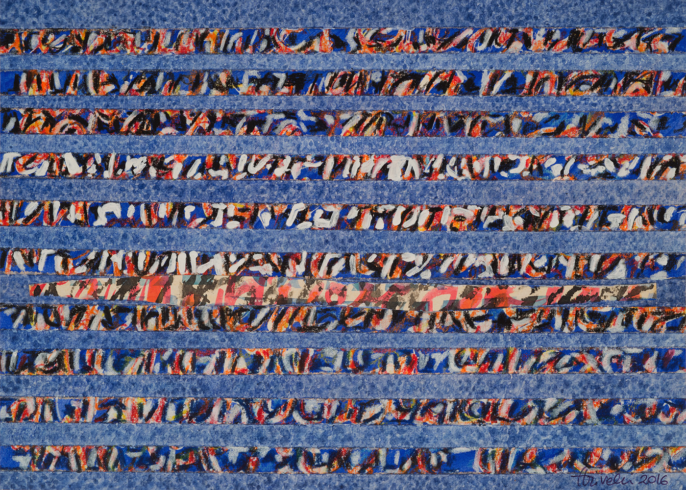 Negli miei ultimi lavori, prevalentemente a collage, la forma e la composizione hanno dialogato con il segno e il colore creando nuove dinamiche espressive.