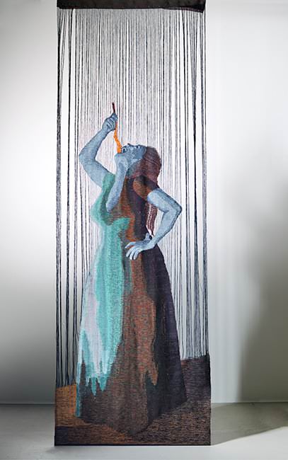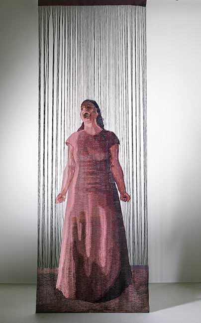 Tuttavia, nonostante stia perseguendo obiettivi precisi ed utilizzi gli strumenti giusti, il risultato artistico di Linda Caorlin non consiste tanto nel carpire – attraverso la tematica – il valore normativo dell’opera, quanto piuttosto nel consentirci il passaggio oltre la sua impossibile soglia. Acquista importanza, in tale processo, sia la via che l’artista percorre per raggiungere l’imago (mesi e mesi di paziente lavoro a telaio, alla ricerca della resa migliore), sia l’imago stessa. Una proprietà transitiva che tende a consolidare il punto d’appoggio fra passato e presente, fra tradizione ed innovazione. Per questo, l’arte di Linda ha un’anima storica, che non rinuncia alla figurazione, all’immaginario come filtri tra percezione e pensiero. È un’arte che fissa i ricordi, individuali e di gruppo, e – così facendo – ridona senso agli eventi; in virtù di tale contenuto (vita propria ed altrui, storia di militanza e d’indagine sociale, di canto e di lotta), dunque non solo al momento di fissare la forma al telaio, le opere di Linda divergono dalla loro realtà empirica in senso stretto. Esistono infatti, nello sguardo dell’artista, una latente collettività, un’etica intrinseca di partecipazione, a potenziare la rivelazione creativa. Animata da simili presupposti, Caorlin non cade mai nel tranello delle categorie, degli spartiacque. Preferisce, invece, partire da interrogativi precisi (e, così facendo, trova pepite d’oro…intuizioni, le chiamano).