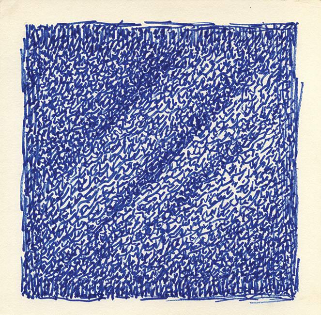 I segni accumulandosi, distribuendosi sulla superficie del foglio si fanno struttura portante del disegno. Ogni segno ha un suo destino, una sua storia, ha un suo preciso valore formale e cromatico.