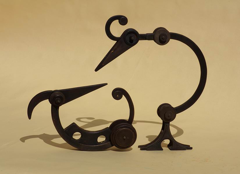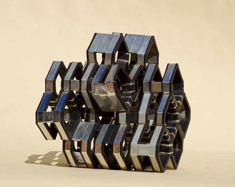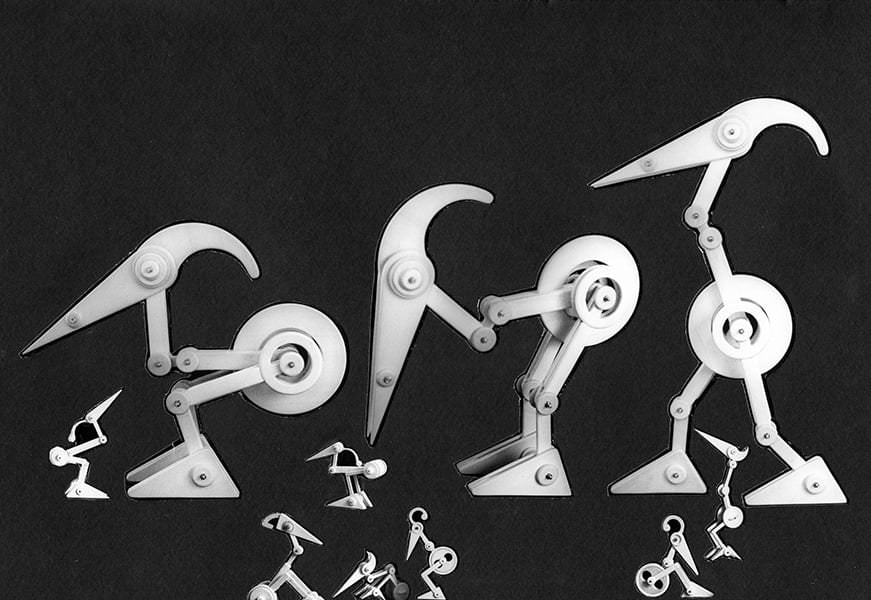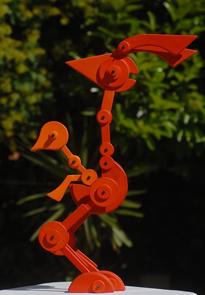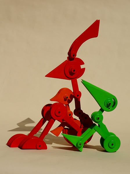 Il carattere manuale si ritrova anche nel fatto che le sue opere possono-devono essere toccate, perchè, se manipolate, possono assumere diverse forme e posizioni. Il movimento favorisce il carattere “narrativo” di questi lavori che offrono la possibilità di inventare infinite storie, di creare sempre nuove situazioni e forme.