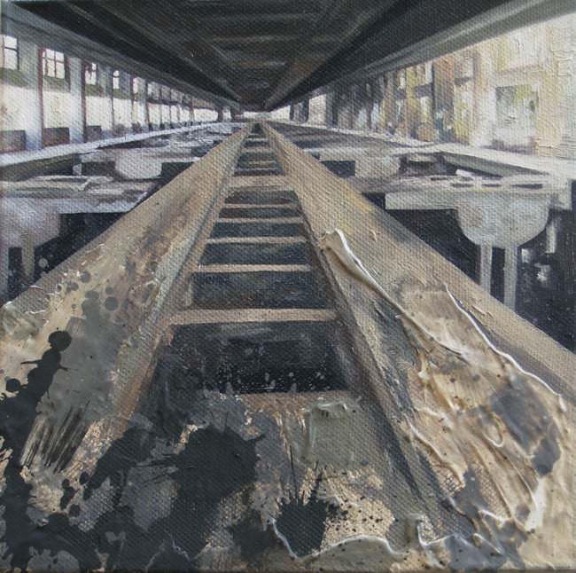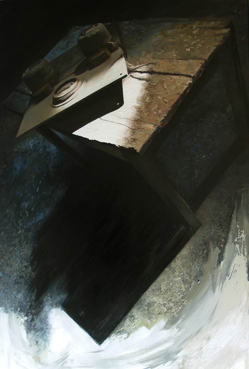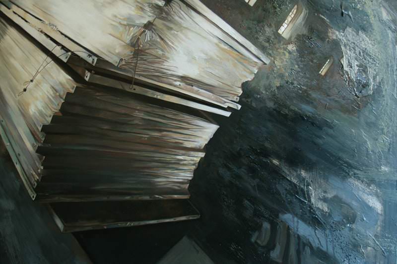 Cosa accade sul fare della sera alle vaste sale di montaggio, ai magazzini vuoti, alle rotaie silenziose con i carrelli fermi, ai banconi e ai bancali abbandonati nei laboratori dismessi, ai capannoni deserti di operai e di merci? Il pulviscolo che li ricopre è il segno della fine di un’epoca ma gli oggetti e i luoghi sono rimasti lì, in attesa di una risemantizzazione. E quale migliore semiologo, in tali circostanze, di un artista capace di ridare un senso alle cose ed agli spazi; una identità a ciò che ha perduto il proprio nome perché il mondo che l’ha generato è scomparso o è cambiato o ne ha persa memoria? Stefano Luciano è il pittore impegnato a ricostruire una città: una sorta di Macondo in cui la volontà dell’artista è in grado di reinventare la realtà secondo le proprie percezioni.