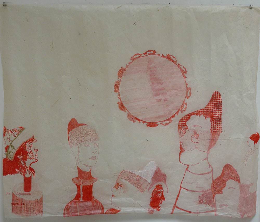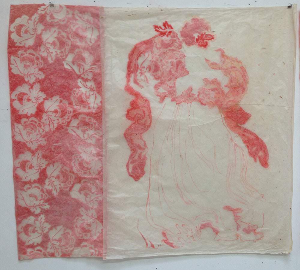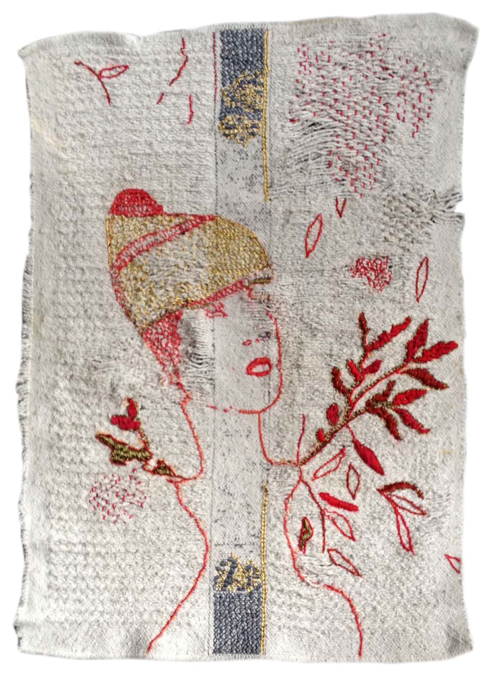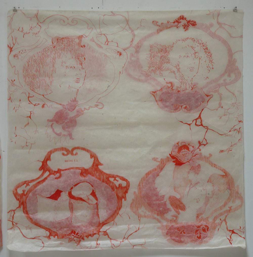 E sempre e ancora i ritratti enigmatici di Mirei…con il colore rosso come filo conduttore: il rosso della vita, della passione amorosa, del piacere e dell'erotismo, del vino, di Venezia…e, come contrappunto il bianco della carta, della tela, della stoffa, dei veli di garza. E poi il nero della scrittura nelle lettere in italiano di Pietro Aretino, scrittore veneziano, autore dei Sonetti lussuriosi, che si contrappongono alle lettere rosse della poetessa lionese Louise Labé, autrice dei sonetti in omaggio all'amore. Creazione di risonanze. Questa corrispondenza amorosa, perfino erotica, immaginaria, tra due personaggi letterari del XVI secolo, conservata preziosamente dentro una scrivania che, nell'opera di Mirei, appena aperta, rivela solo parzialmente il suo segreto, conduce a riflettere sulla rappresentazione: il senso è nascosto dietro il vetro della scrivania (in francese scrétaire, allusivo gioco di parole, ndt.) –non rivelare il segreto!-; l'opera, metaforica, deve essere interpretata. Gioco di rebus. Velare, svelare, mostrare, dire, nascondere, mantenere il segreto, lasciar intravedere… In un ritratto caleidoscopico, Mirei l.r. si svela parzialmente, ci consegna dei frammenti, dei riflessi di Lei/Loro: pezzetti di corpo-volti, mani, piedi…-, pezzetti di ricordi, di pensieri, di anime ed emozioni. Dove sovente affiora l'umorismo. Erede del passato e della storia, prodotto di una progenie di personaggi femminili, l'artista compone l'autoritratto di un Io frammentato, reiterpretato alla luce della storia letteraria, artistica. Essa diventa di volta in volta la dogaressa del corno ducale, maestosa ed altera, "indolente e superba, / una donna, in disparte, /Volgendosi all'indietro in una nuvola di broccato" (J.-M.De Heredia, "La Dogaresse")-, l'imperatrice Sissi, la cortigiana di Carpaccio, la "Belle Cordière" e la "Belle rebelle" al seguito di Louise Labé. "La vita sognata di Mirei". Wall Power Unlimited…Ritratto ironico Lookloque, ricamato col filo rosso delle ragazze d'altri tempi su uno straccio logoro, quel rosso che "contraddistingue" i corredi delle donne: Mirei all'interno di una progenie, da ragazzina a donna matura, con una nuova allusione ironica al ruolo femminile della "casalinga"! Ritratto di una donna – di tutte le donne, dal particolare all'universale – che resta misteriosa.