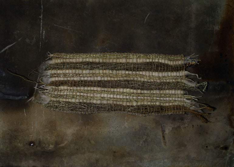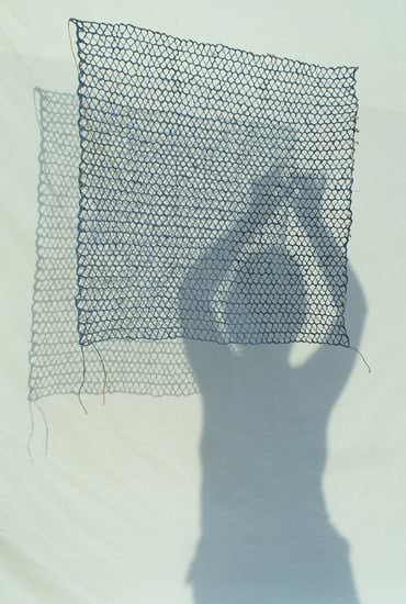 Sempre attenta all’arte “silenziosa” delle donne che spesso non si conosce, Annamaria Redolfi, con solitaria pazienza e con una sapiente manualità, intreccia fili di canapa per dare forma a reti che non hanno nessuna funzione “pratica”, non servono infatti per catturare animali, raccogliere oggetti; non sono reti estese ad offrire riparo, protezione o sbarramento.